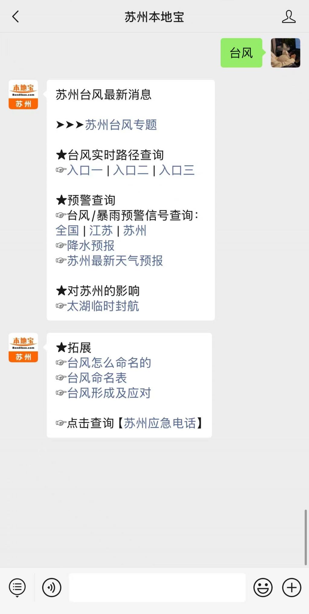 温馨提示:微信搜索公众号【苏州本地宝】,在对话框回复【台风】获台风登陆时间/地点、实时路径查询,对苏州风雨影响、地铁/公交/高铁停运等内容。